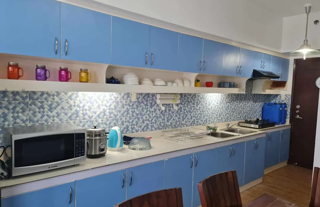 この宿泊施設は食事の準備に必要なすべての調理器具を備えた設備の整った台所があります。 Jeepney Terminalバス停はこのアパートすぐ近くの場所にあります。 フィットネスセンターを利用できるし、運動習慣を維持するのが簡単になります。